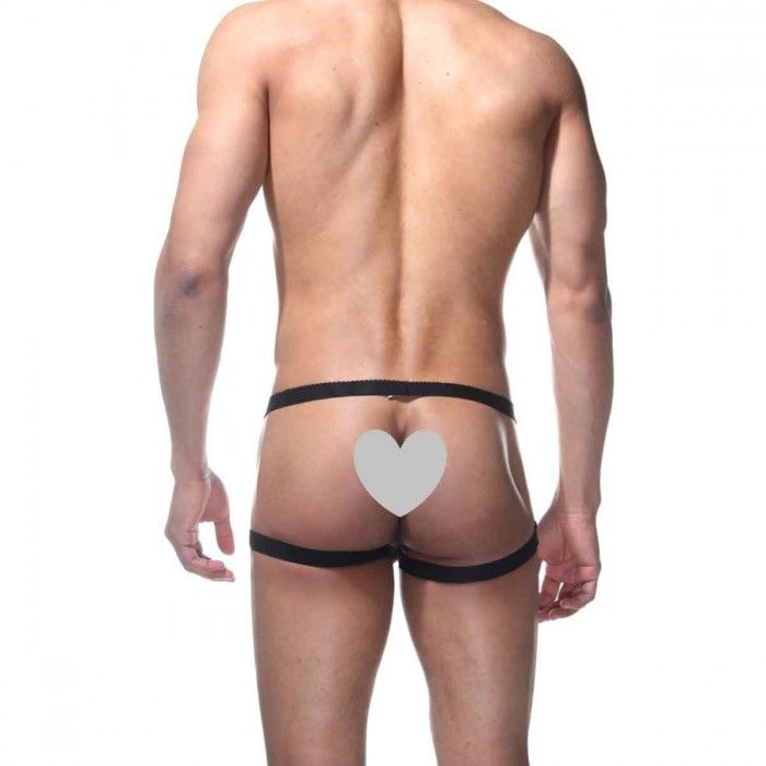 Мужские трусы из гладкого материала, с полностью открытыми ягодицами и резинками на бедрах.