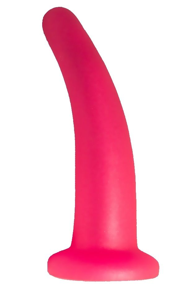 Розовый изогнутый стимулятор простаты из геля.