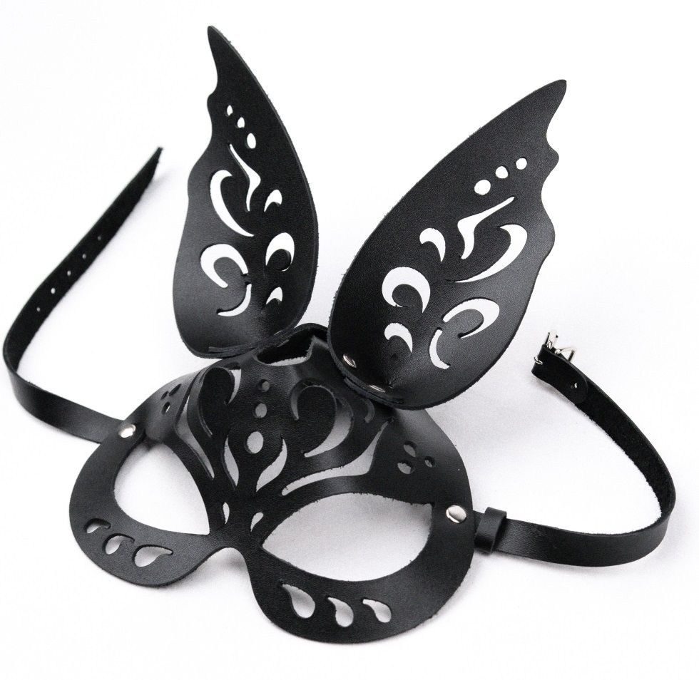 Узорчатая маска Зайка с резными ушками выполнена из натуральной кожи.