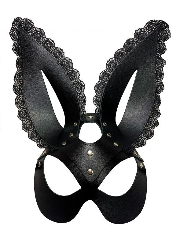 Супер эффектная и сексуальная маска зайки. Выполнена маска из плотной черной кожи высокого качества, она отлично держит форму. Ушки декорированы красивым чёрным кружевом, что придает образу кокетства. Подойдет к любому типу лица, отлично подчеркнув глаза. Ушки длинные, стоячие. Фиксируется маска на металлическую пряжку сзади. Этот аксессуар станет главной фишкой вашего образа, добавит сексуальности и игривого настроения!