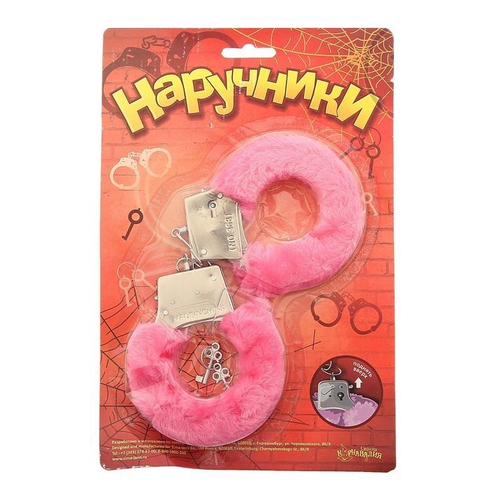 Металлические наручники с розовой плюшевой отделкой.