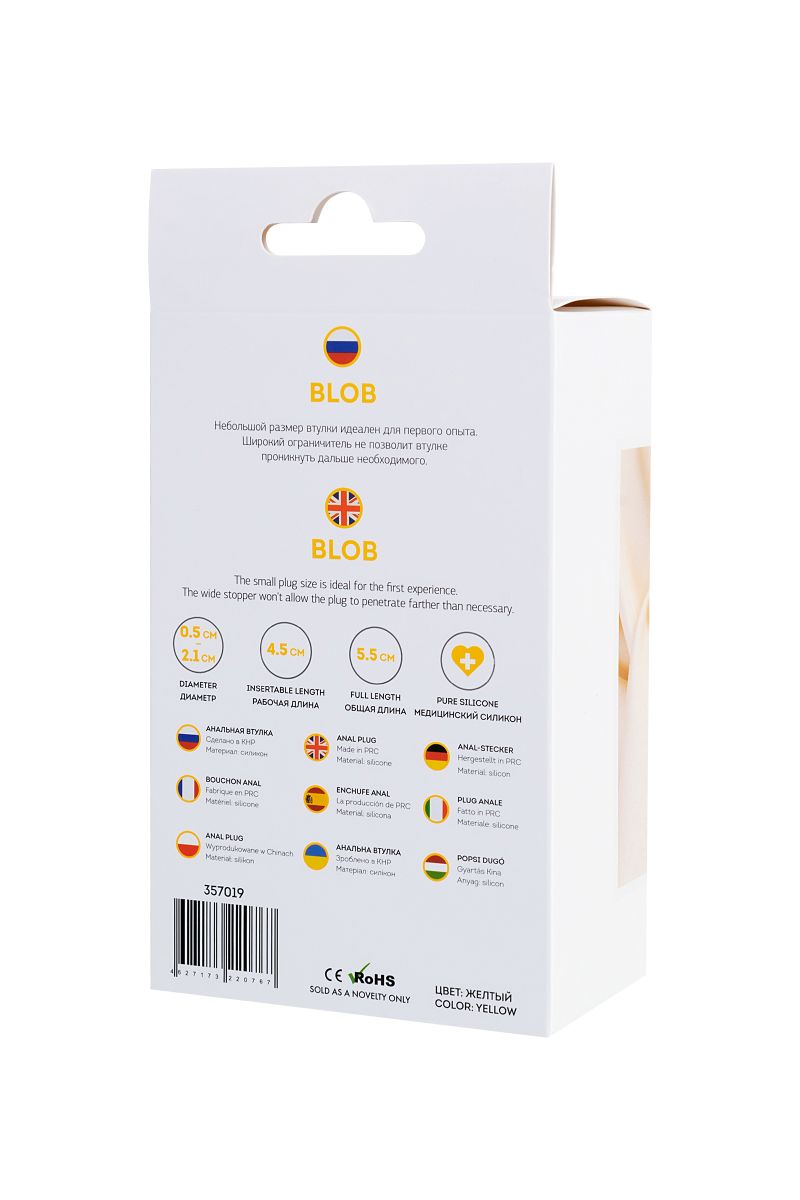Анальная втулка Blob. Небольшой размер втулки идеален для первого опыта. Широкий ограничитель не позволит втулке проникнуть дальше необходимого. Рабочая длина - 4,5 см.